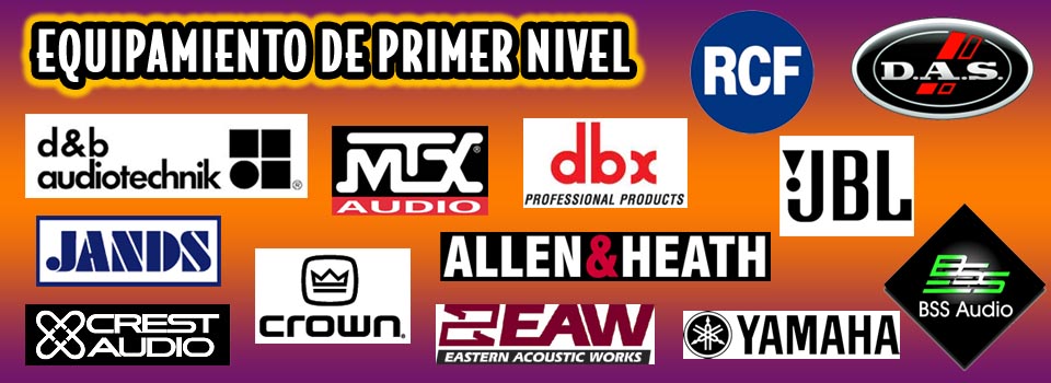 ALLEN & HEAT, RCF, YAMAHA, PR, SOUNDCRAFT, CROWN, CREST, MTX, BSS, entre otras.